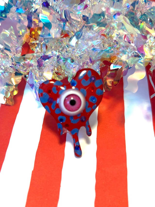 \邪悪なモノは寄せ付けるな/ がテーマの眼るてぃシリーズです♡ オミミノコイビト同様一つ一つ手描きしたリングです。 ツヤ感とPOPなデザインの大ぶりリングシリーズ! 金具はステンレスです。開閉式なのでサイズ調節が出来ます。 表だけではなく裏も丁寧に加工しています。接着剤とレジンの二重接着で強度を高くしています。