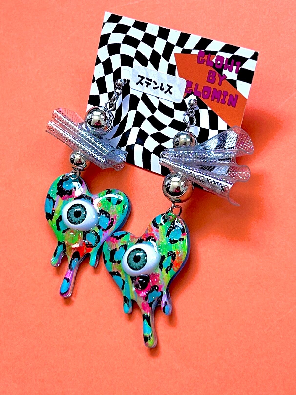 オミミノコイビトは一つ一つ手描き、加工して作っています。ピアス、イヤリング共に比較的アレルギーが起こしにくいステンレス素材にしています。
