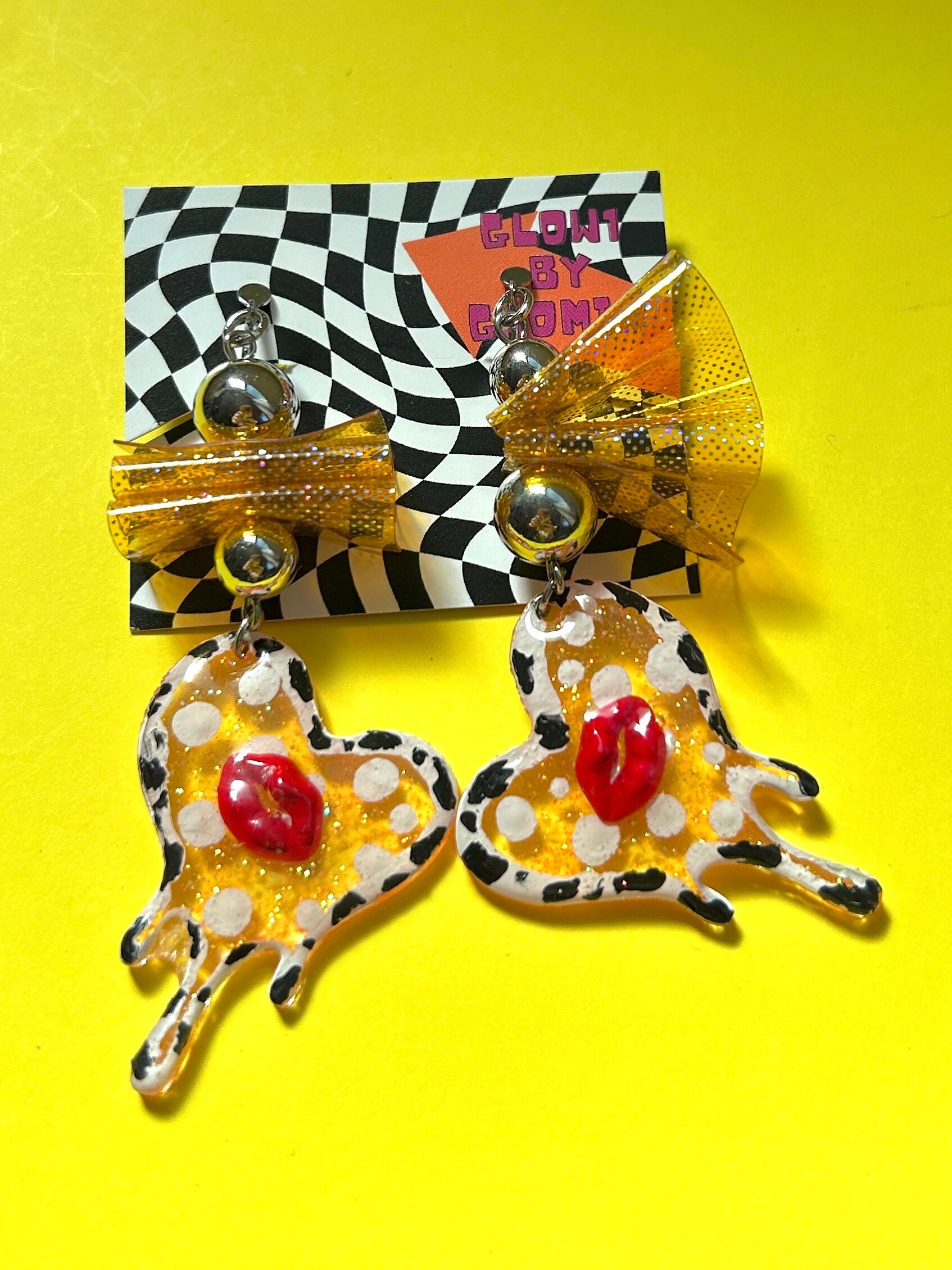 牛柄とクリアオレンジが可愛いアイテム!PVCリボンも真ん中のクリアオレンジに合わせてキラキラなクリアオレンジにしています★