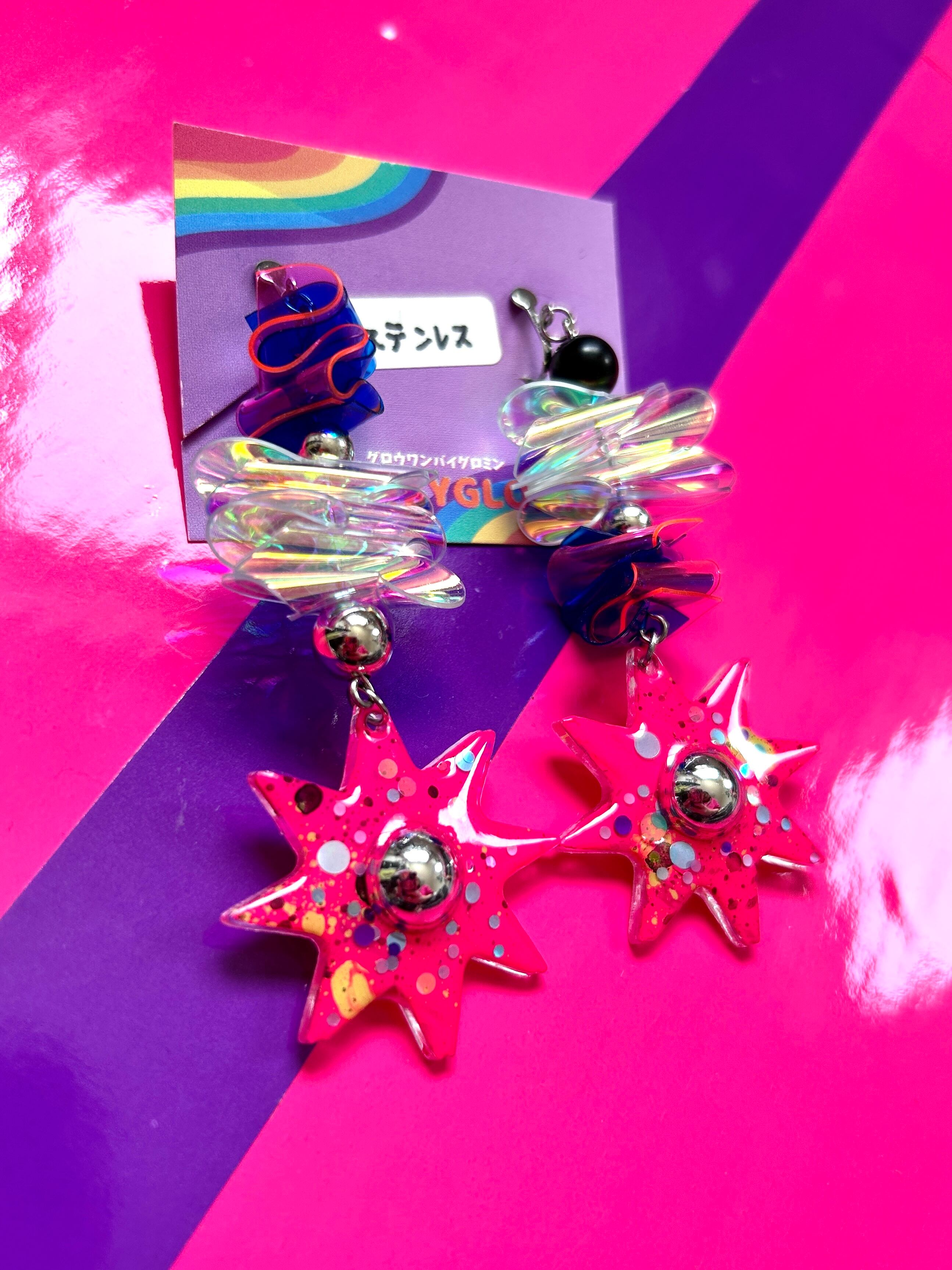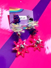 イヤリングはクリップタイプで痛み防止シリコンカバーもお付けします。ピアスはフックタイプです。