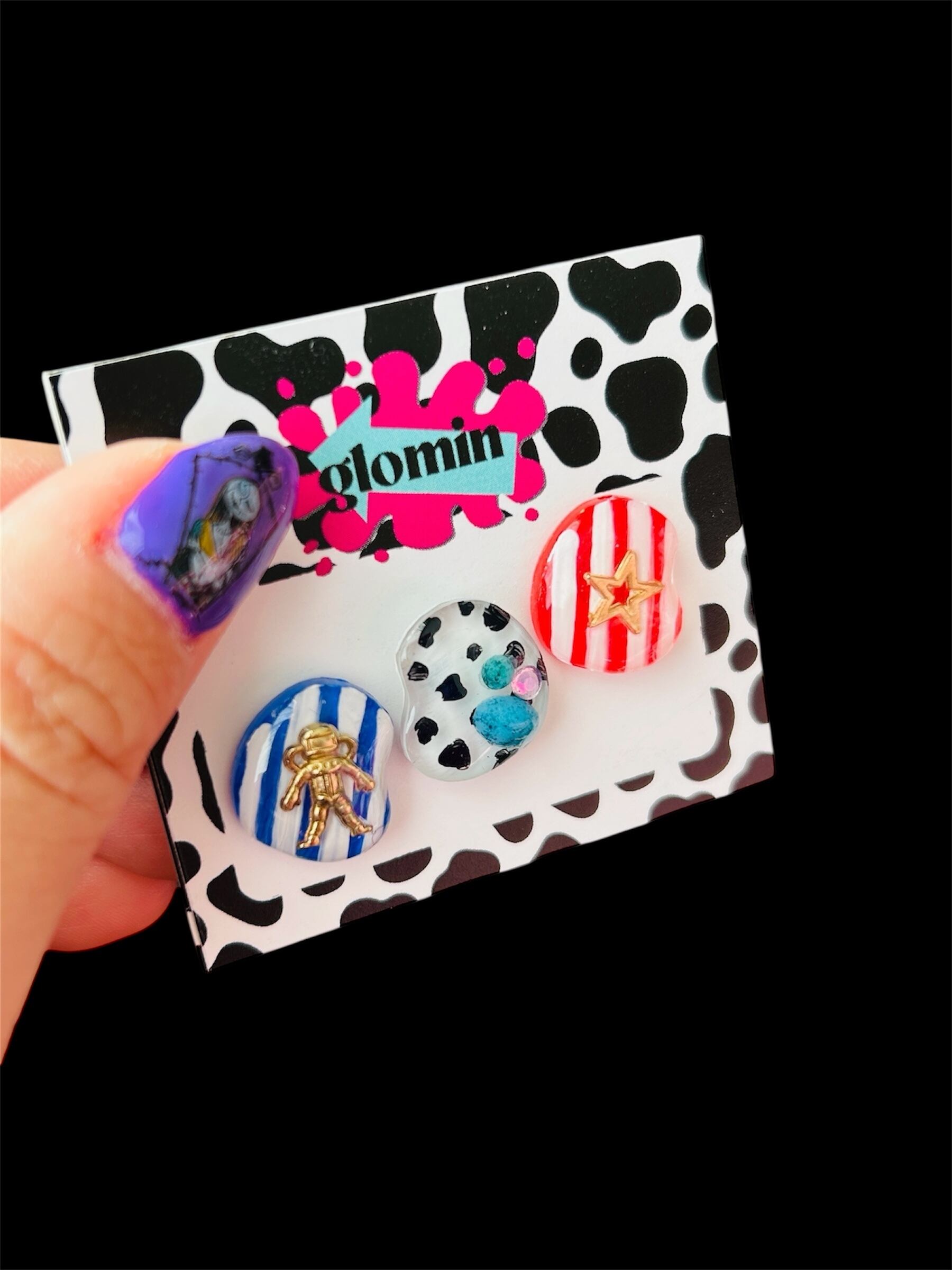 約1.5cmの1粒ピアスです★3つセットになります。ぷっくりツヤツヤでさりげなくカラフルを取り入れるファッションができます。