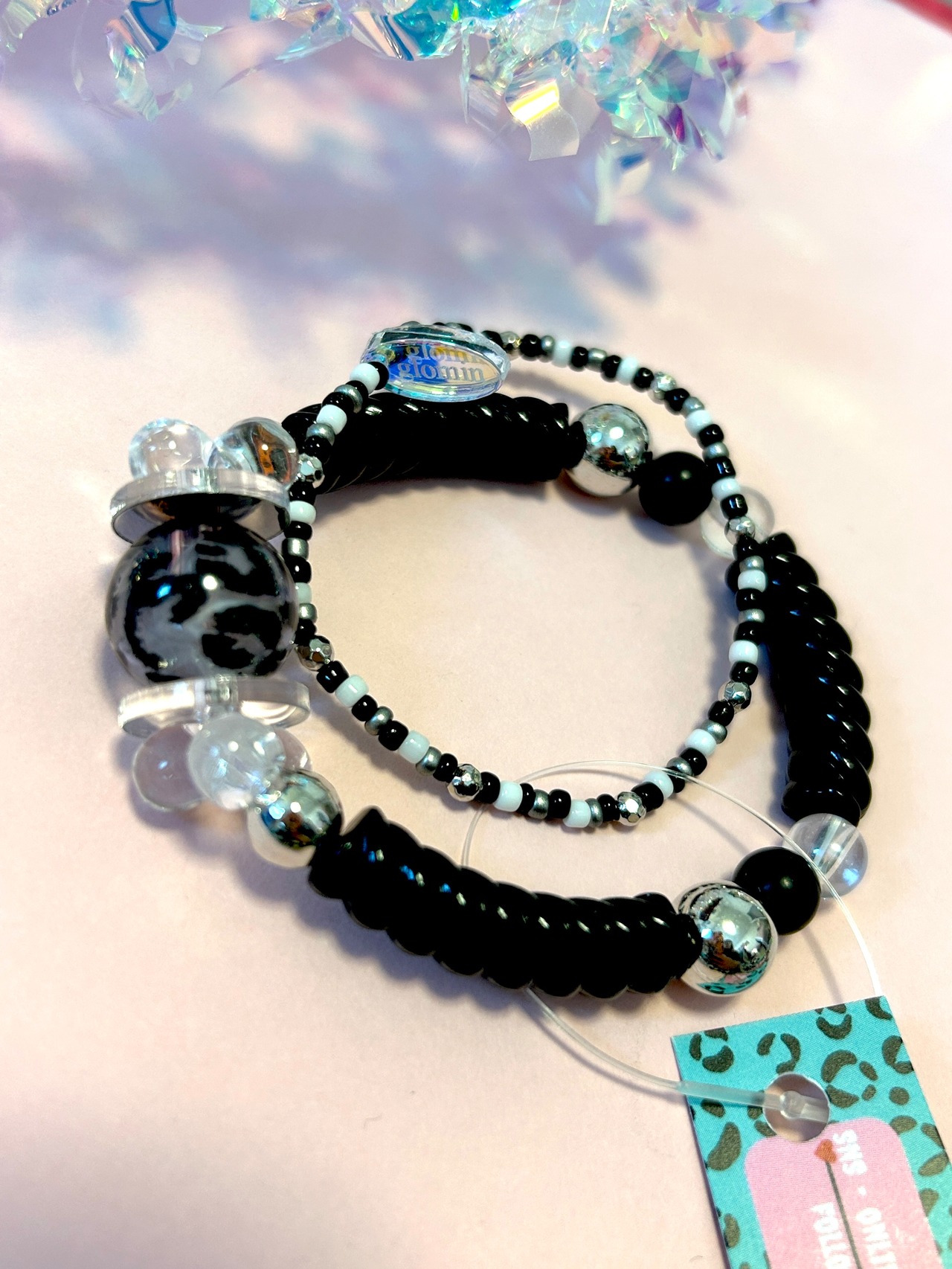 大人でも楽しめるゴムブレス2本set!!色んなファッションに合わせやすいデザインです。