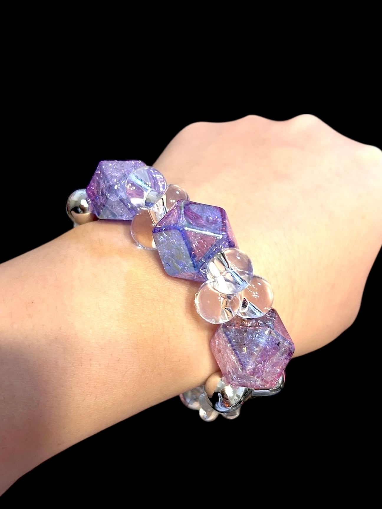 氷のように美しい大人でも楽しめるゴムブレスです。ゴムは二重テグスで強度を強めているのでなるべく切れにくいように作っています★(引っ掛かり、強く引っ張るなどはご注意ください)