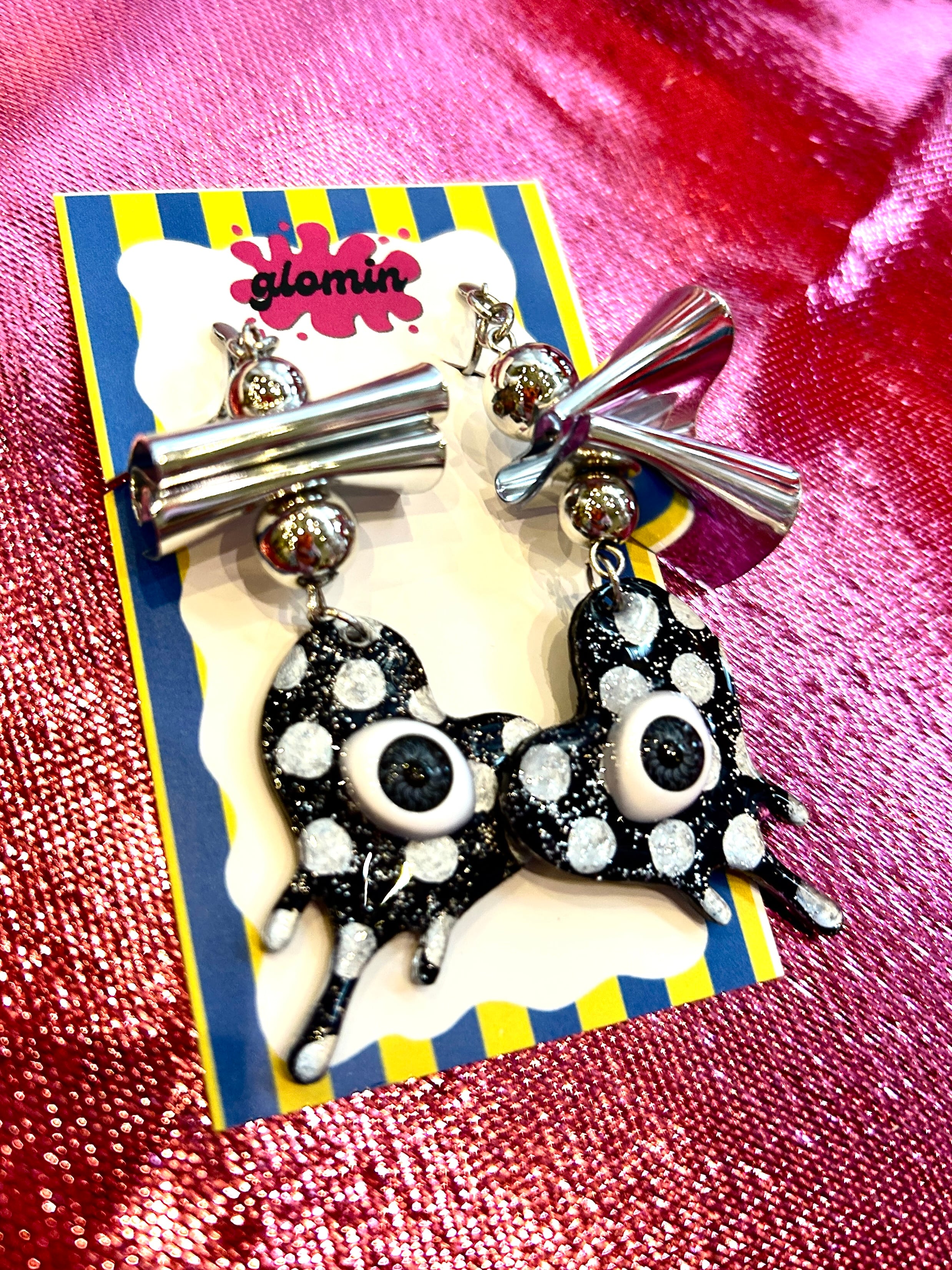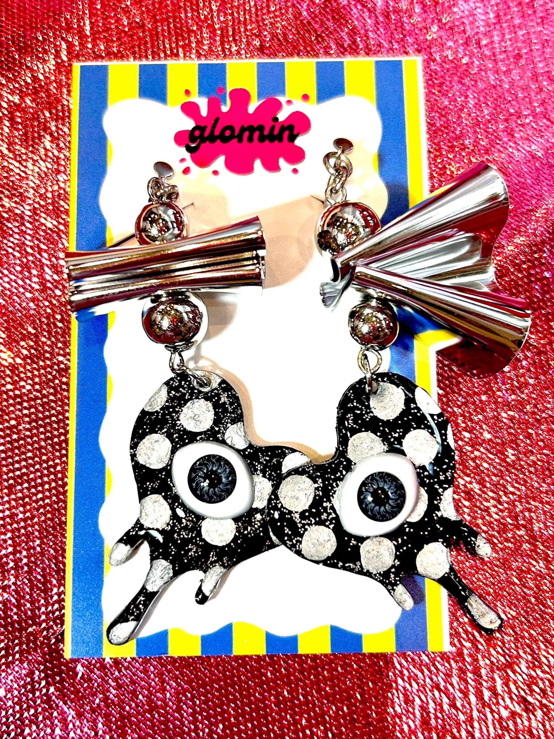 glominで1番人気の強めアイテム☆こちらはブラックラメにシルバーのドット、ミラーのPVCで合わせやすいデザインです。